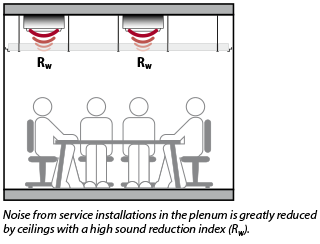 I controsoffitti con un elevato indice di riduzione acustica Rw contribuiranno a impedire l'ingresso nell'ambiente dei rumori generati dagli impianti nel plenum.